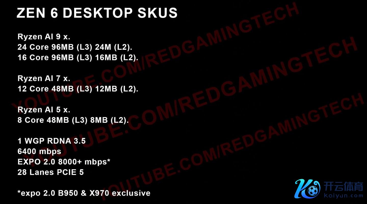 IT之家 8 月 27 日音讯开云体育(中国)官方网站,Youtube 频谈 Red Gaming Tech 在最新一期视频中,清楚 AMD 谋划于 2026 年推出 Zen 6 架构 Ryzen 处置器,裸露信息炫耀将领受“Ryzen AI”定名,并在 Ryzen 5/7/9 系列中提高中枢数目,最高可达 24 核。